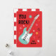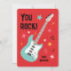Cool and fun classroom Valentine’s day card for children with an illustration of a colorful electric guitar and “You Rock!” message.