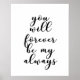 This is a beautiful romantic wedding typography quote featuring You will forever be my always