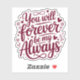Celebrate timeless love with this heartfelt design featuring the phrase “You Will Forever Be My Always.” This romantic quote captures the feeling of unconditional commitment, deep connection, and forever love—perfect for couples who believe in soulmates and lasting bonds.
