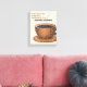 Home decor for the ultimate coffee lover. This fun, 8" x 10", canvas print will look good in a kitchen, breakfast area, coffee bar and even an office break room. The design has a light beige background. The main focus, of this print, is a giant coffee cup that has a digital look to it. Above the image: If You Walk A Mile In My Shoes, You'll End Up Ay My COFFEE MAKER. Cream and sugar are optional.