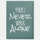 You'll Never Walk Alone Quote gift magnets with vintage aqua green chalkboard background and white typography print. See more inspirational and motivational Christian gifts at Christian Quotes. Vikkelynn Designs & Co