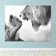 This canvas print shows an adult lion roaring angily at his lion cubs with one of the cubs holding up its paw in a playing motion with black and white colours in this nature & animals style and theme. Our prints are printed with the highest resolution on cotton-poly archival paper, for a long-lasting fade resistant print measures. This print will make for the perfect addition to brighten up any home or office.