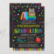 Adorable graduation ceremony invitation! Features a faux chalkboard background and cute school graphics!