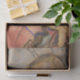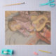 This design features a painting by the Polish artist Stanisław Wyspiański. It shows a young boy sleeping in bed. He looks relaxed and contented with his eyes closed. He is wrapped in a pink shirt and he is surrounded by blankets. It is a portrait of the artist's son. The painting has been done in an art-nouveau style. The original artwork was painted in 1902.