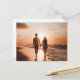 Young couple walking the beach at sunset postcard