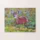 My original artwork is featured on this cute puzzle, consisting of my original photograph of a young wild deer, resting in a meadow and styled with an impressionistic painterly technique for an artsy appearance.