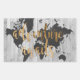 den text phrase and a black map of the world over a grey plank background.. Artist: Studio W