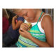 Photo of a young blonde girl holding a baby duckling