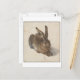 Young Hare by Albrecht Durer, 1502, is a detailed, naturalistic watercolor and gouache drawing of a young rabbit. Among the first artists to paint details of landscape and nature, here Durer’s precise brush captures the hare’s patterns of fur growth and coloration so vividly that the animal appears it could move.