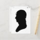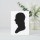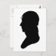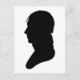 Reproduction of a classic silhouette portrait. The original was created by Peale, Charles Willson Peale in about 1761 and 1827. The image features the bust silhouette of a man facing left. He looks young to me as his hair is natural and stops above the collar with bangs hanging over his forehead. Perhaps for that time frame an older businesman would want to be remembered in his fancy wig.