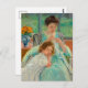 Young Mother Sewing (1900) by American impressionist artist Mary Cassatt. Original artwork is an oil painting on canvas. The portrait depicts a mother sewing by hand, while her young child leans close to her lap.