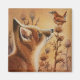 Young Red Fox & Carolina Wren Bird Watercolor Art Magnet