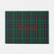 Traditional blue, green, yellow and red clan Young tartan plaid door mat, with red script text ready to personalise. Great gift idea.