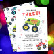 Young Wild 3rd Birthday Kids Monster Car Trucks Invitation