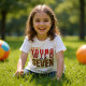 Celebrate a special 7th birthday in style with this "Young Wild and Seven" t-shirt! Featuring bold, eye-catching typography with a playful leopard print accent on the word "Seven," this tee is perfect for any adventurous seven-year-old. The design incorporates a mix of vibrant red and soft pink for the "Young Wild" text, creating a fun and energetic look. This shirt is a fantastic way to make the birthday girl feel extra special and celebrate her wild spirit on her big day. It's ideal for birthday parties, photoshoots, or just everyday wear for a fabulous seven-year-old.