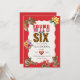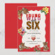 Roar into a sixth birthday celebration with this "Young Wild and Six" invitation! This design features adorable tiger cubs peeking out from behind vibrant tropical flowers, set against a bold red background. The text "Young Wild and Six" is playfully designed with leopard print accents, making it a truly unique and eye-catching announcement for a jungle or safari-themed party. Perfect for any little one turning six and ready for an adventure!