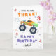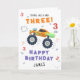 Young Wild And Three 3rd Birthday Kids Monster Car Card