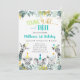 This cute birthday invitation features watercolor safari animals with faux gold foil laves and confetti.