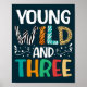 Young Wild And Three Funny Girl Boy 3rd Birthday Poster