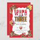 Celebrate your little one's special day with this "Young Wild and Three" birthday theme! Featuring adorable tiger cubs and vibrant tropical flowers, this design captures the spirit of adventure and fun. Perfect for a jungle or safari-themed party, this invitation sets the stage for an unforgettable celebration. The bold "Young Wild and Three" text, combined with the playful tiger graphics and exotic floral accents, creates a visually engaging announcement for a third birthday. Make your child's birthday a roaring success with this unique and exciting design.