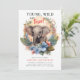 Young Wild Three 3rd Birthday Kids Cute Elephant Invitation
