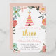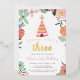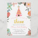 Adorable invitations for your wild one's third birthday feature a boho floral border and pink teepee illustration. "Young, wild and three" appears in gold foil lettering, with your 3rd birthday party details beneath, on a white background accented with gold foil trim.