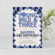 Young Wild and Three Boy Birthday Invitation | Modern Retro Blue 3rd Birthday Party Invite.
