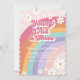 Young Wild and Three Retro Rainbow 3rd birthday invite with daisies.