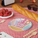 Young Wild and Three! Retro Sunshine Rainbow Daisy 3rd birthday plates.
