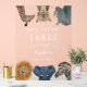 Fun safari theme 3rd birthday party sign featuring illustration of wild animals. The sign says "young, wild and three."