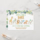 This cute birthday invitation features watercolor safari animals with tropical leaf accents and faux gold foil confetti.