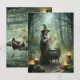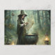 Step into an enchanted forest where magic comes alive. This artwork postcard features a young witch with dark hair, dressed in a flowing green gown and matching hat, reading intently from an ancient scroll. Perfect for lovers of witchy aesthetics, fantasy art, and mystical gifts, this design captures the essence of enchantment, ritual, and wonder.