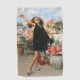 This design features a painting by the Italian artist Vincenzo Irolli (1860–1949). It depicts a young woman raising her glass in a toast. This was during a moment of celebration and relief at the end of World War II. The original title of the painting is "A Toast (2 May 1945)", and the date is when Berlin fell to the Allied forces and also when German forces surrendered in Italy. The face of the young woman shown here is lit up with an excited yet serene expression. She is wearing a glamourous red dress and is in a courtyard with potted plants behind her. The sky is bright, suggesting a sense of hope, renewal and the promise of a peaceful future.