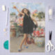 This design features a painting by the Italian artist Vincenzo Irolli (1860–1949). It depicts a young woman raising her glass in a toast. This was during a moment of celebration and relief at the end of World War II. The original title of the painting is "A Toast (2 May 1945)", and the date is when Berlin fell to the Allied forces and also when German forces surrendered in Italy. The face of the young woman shown here is lit up with an excited yet serene expression. She is wearing a glamourous red dress and is in a courtyard with potted plants behind her. The sky is bright, suggesting a sense of hope, renewal and the promise of a peaceful future.