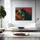 In this work, William J. Glackens juxtaposes dark green and bright orange, employing both hues to render the skin tone of his model.