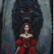 Young Woman In Red Gown With Black Wolf Guardian decoupage paper