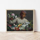 Young Woman with Peonies (1870) by French impressionist artist Frédéric Bazille. Original artwork is an oil painting on canvas depicting a depicting a black woman with a lush array of flowers.