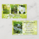 Business card featuring your own photos (optional) framed by a modern green floral design. Great for a landscape architect, garden design and maintenance or lawn mowing company as well as any other professional who would like to showcase their work.