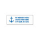Self-Inking Stamp with your personalised family name, address or other desired text and a custom nautical boat anchor. Several ink colours to choose from.