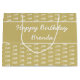 Say “Happy birthday” with this versatile gold and white party theme that’s perfect for any age, from toddlers to centenarians. It’s suitable for boys, girls, men, women, and especially those celebrating milestone birthdays. The simple graphic design features your age number repeated in a tiled, seamless pattern in the background, while the words “Happy birthday” and a name are printed on the front.