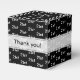 Say “Thank you” in style with this versatile black and white party theme that’s perfect for any age group, from toddlers to seniors. Celebrate birthdays, anniversaries, or any special event with these elegant boxes. The simple graphic design features your age repeated in an offset number pattern, while the words “Thank you” are elegantly printed on the front banner. Add a personal touch with a short message on the top, such as “Thank you for coming.” Personalise the box with your message, event, name, initial, or monogram using text templates.