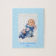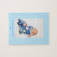 Your Baby Boy Photo with His Name in Blue Frame Jigsaw Puzzle