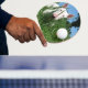 Customise this cute ping pong paddle with a picture of your own dog. Meet Mackenzie, the English Bull Terrier that turned our lives upside down and stole our hearts in the process. She is always full of fun and keeps us on our toes. She is shown in this photo peeking through some long green grass. This adorable dog is pictured against a beautiful blue sky on a bright sunny day.