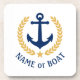 Your Boat Name Anchor Elegant Gold Laurel White Coaster