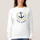 A custom designed nautical boat anchor, gold style laurel leaves and a gold star with Your Personalised Name or Boat Name on a women's white sweatshirt. Several shirt colours to choose from. Makes a great gift.