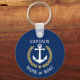 Your Boat Name Captain Anchor Laurel Navy Blue Key Ring