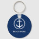 A personalized nautical themed keychain with your boat name, family name or other desired text. This unique design features a custom made vintage boat anchor with diamond circle emblem in white on a background of classic navy blue. If needed, background color can be easily customized by you to match your current decor. Makes a great gift on any occasion for that super captain, skipper or sailor.