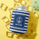 Your Boat Name Sea Anchor Blue Can Cooler - Blue and White Stripes
