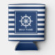 Your Boat Name Ships Wheel Helm Navy Striped Can Cooler