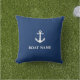 Your Boat Name Vintage Anchor Blue Throw Pillow Cushion.